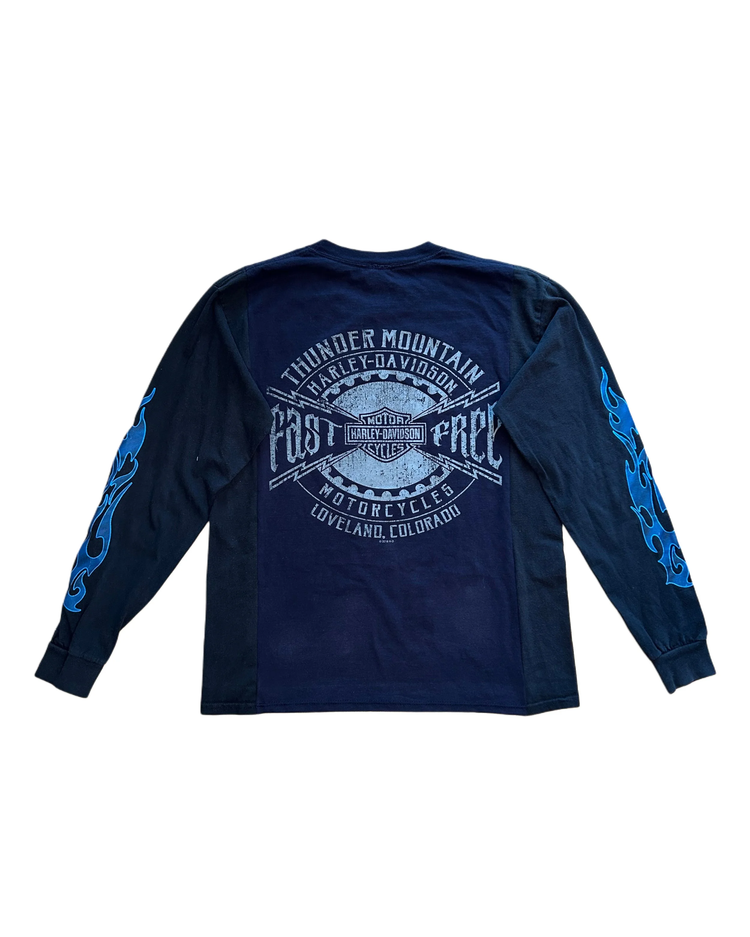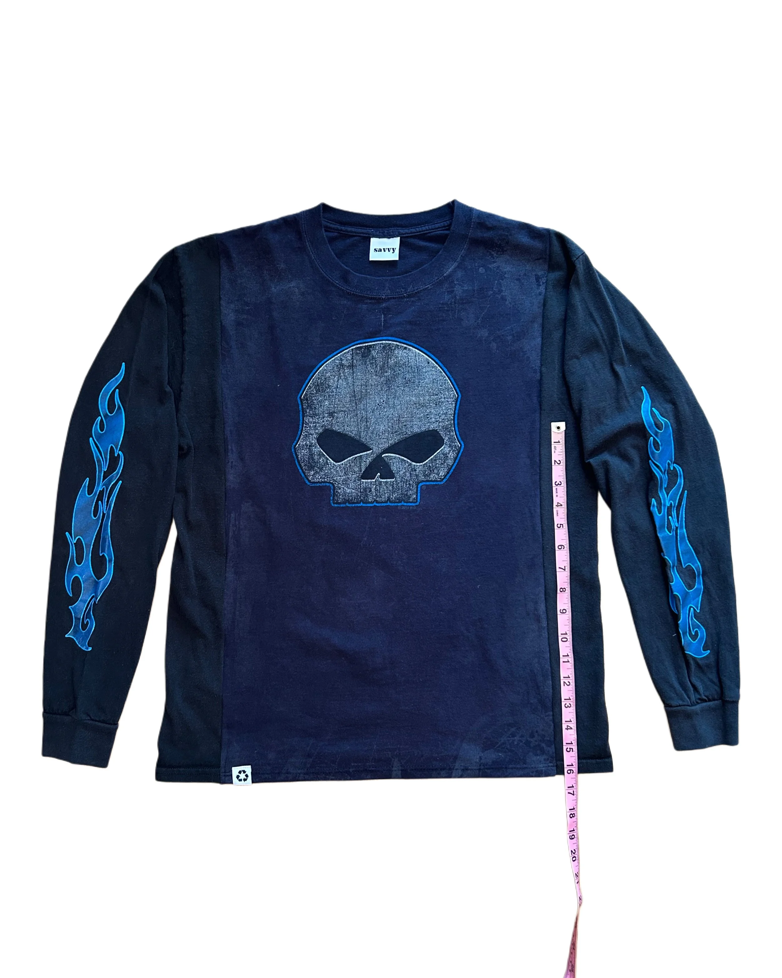 Upcycled Harley Davidson T-Shirt with flame sleeves.